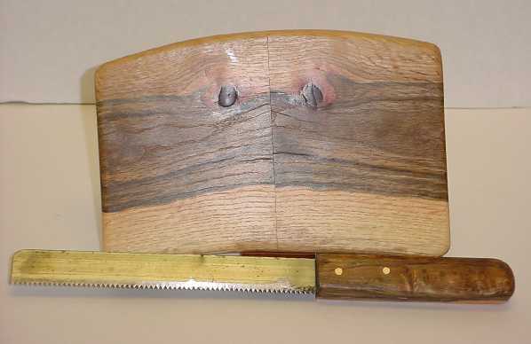 Leftover wood used to make a cheese board and knife handle